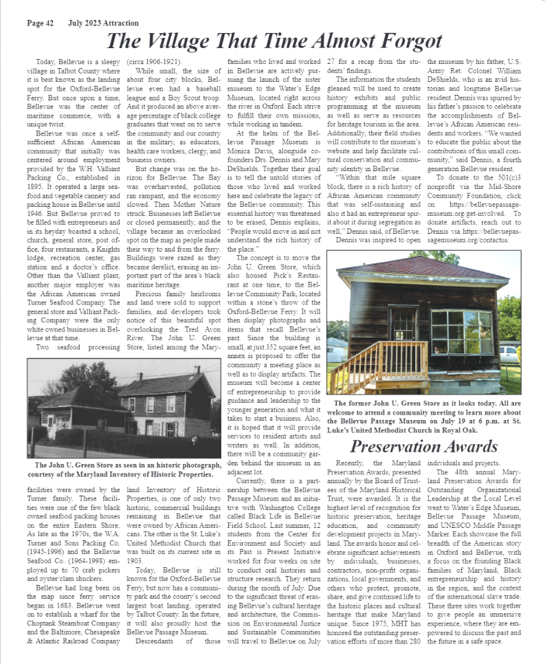In the article “The Village that Time Almost Forgot,” written by Jennifer Latham of Attraction Magazine, learn more about Bellevue’s rich African-American history and what we hope to accomplish with Bellevue Passage Museum.